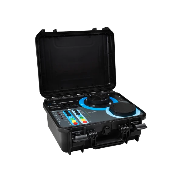 The A 1832 Mode 3 Charging cable adapter is used for electrical safety testing of Mode 3 EV charging cables with Type 2 connectors together with supported METREL or third-party testers.