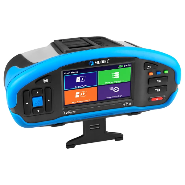 MI 3132 EV tester is a portable, battery powered test instrument with excellent IP protection and designed especially for electric vehicle testing. The instrument support the latest standard UN ECE R100 Annex 4A, 4B, intended for measurement of insulation resistance for electric vehicle. The instrument is ergonomic in design with intuitive user interface, encompassing a memory organizer and fully programmable AUTO SEQUENCEs, managed through a large colour touch screen display. Besides those, the instrument supports a wide range of tests and measuring functions, including 2 A Micro Ohm measurement, on-line voltage monitoring, insulation test up to 1500 V, as well as functional and visual inspections.