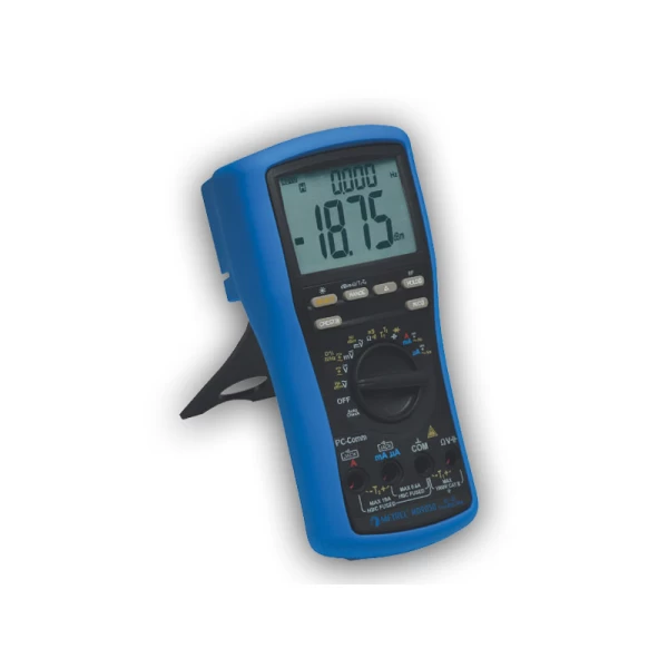 The MD 9050 ranks among the best multimeters on the market. High resolution and accuracy, 2-line LCD display, fast data acquisition and transfer (via optical interface), CAT IV/1000 V, TRMS current and voltage measurement, non-contact voltage detector, conductance measurement, etc.