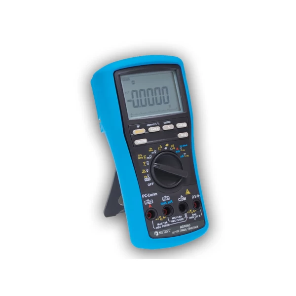 The MD 9060 ranks among the most accurate multimeters with a large bandwidth and very high resolution. Metrel MD 9060 is equipped with a built-in VFD feature that makes the instrument capable of measuring the true values in accordance with frequency, large 2-line 500.000 counts LCD display, fast data acquisition and transfer (via optical interface), CAT IV / 1000 V, TRMS current and voltage measurement, conductance measurement and fast one-handed operation. MD 9060 has a wide range of extra features, including data hold, memory, min / max, average, differential, peak, peak / peak with extra fast 1ms response time, auto power off, frequency filter, reset and relative function. The MD 9060 is the ideal choice for demanding measurement tasks in industry, in the laboratories and in everyday repair and maintenance practice.