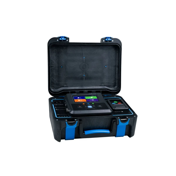 The irradiation and cell temperature are measured in real time with the wireless remote unit. Additionally, all category 1 tests are collected in a single auto test, which enables the user to execute all the tests with a single touch of the start button. The instrument is controlled via a large colour touch screen display from which the user can prepare and start selected tests or measurements, store results, and review them. It is also possible to change previously entered wrong parameters on an already executed measurement or a group of measurements.