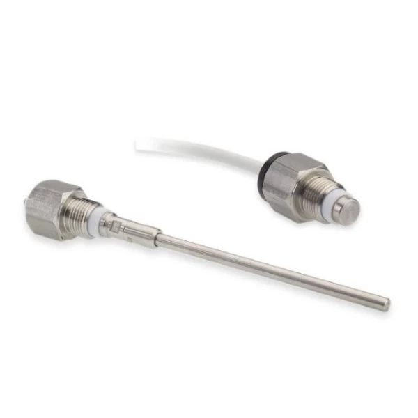 Conductivity probes CNP–18 are designed for direct detection of conductive liquid levels such as water and water solutions. The probes can be connected to a Dinel panel indicator unit, type CDSU-522-W, or other types of indicator/transmitter units suitable for connection to conductive sensors.