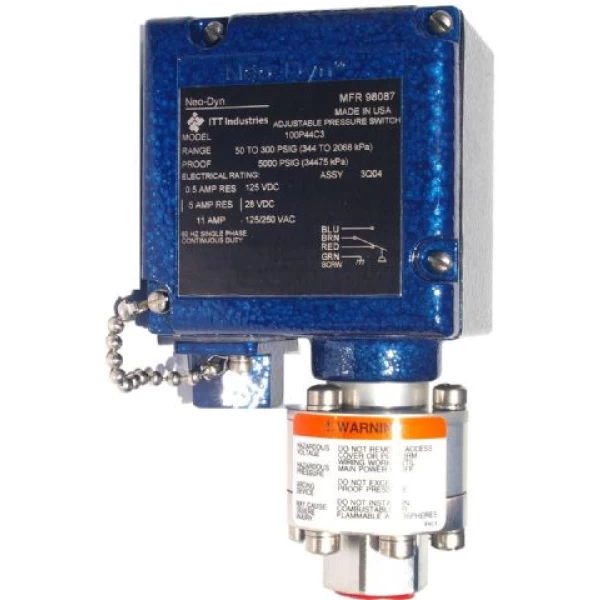 A range of pressure switches designed with piston in place of diaphragm for high impulse hydraulic applications. Using Neo-Dyn’s unique Belleville spring design, these adjustable range switches are suitable for high vibration applications.