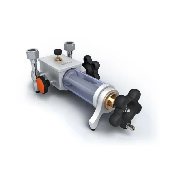 The ADT925 Hydraulic Pressure Test Pump is a hand operated pressure pump designed to generate pressure from -85 kPa to 40,000 kPa. A high quality vernier control allows the high pressure to be easily generated and controlled smoothly. Two hand tight connectors installed on the pump allow for easy connecting and disconnecting to the test pump without the need for wrenches or thread tape. The ADT925 is an ideal comparison test pump for calibrating pressure instruments in the field or workshop.